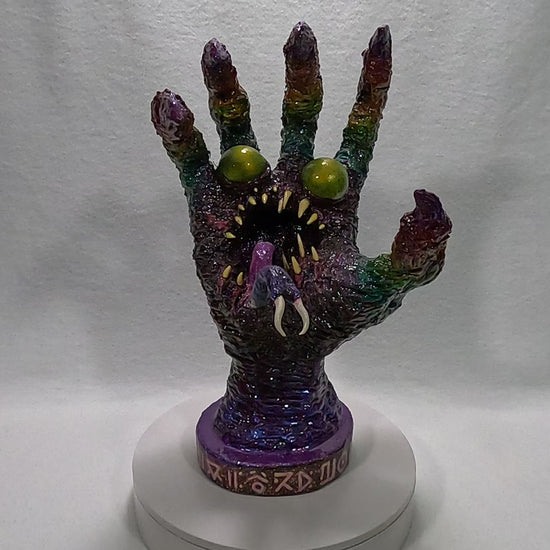 The wastelander stepped carefully through the ruins of the post apocalyptic landscape, lifting a rusted sheet of metal—then froze. Beneath it, a severed hand twitched, its palm warped by mutation. Two metallic eyes blinked above a jagged, toothy maw, while a writhing, pincer-tipped tongue flicked from its center.