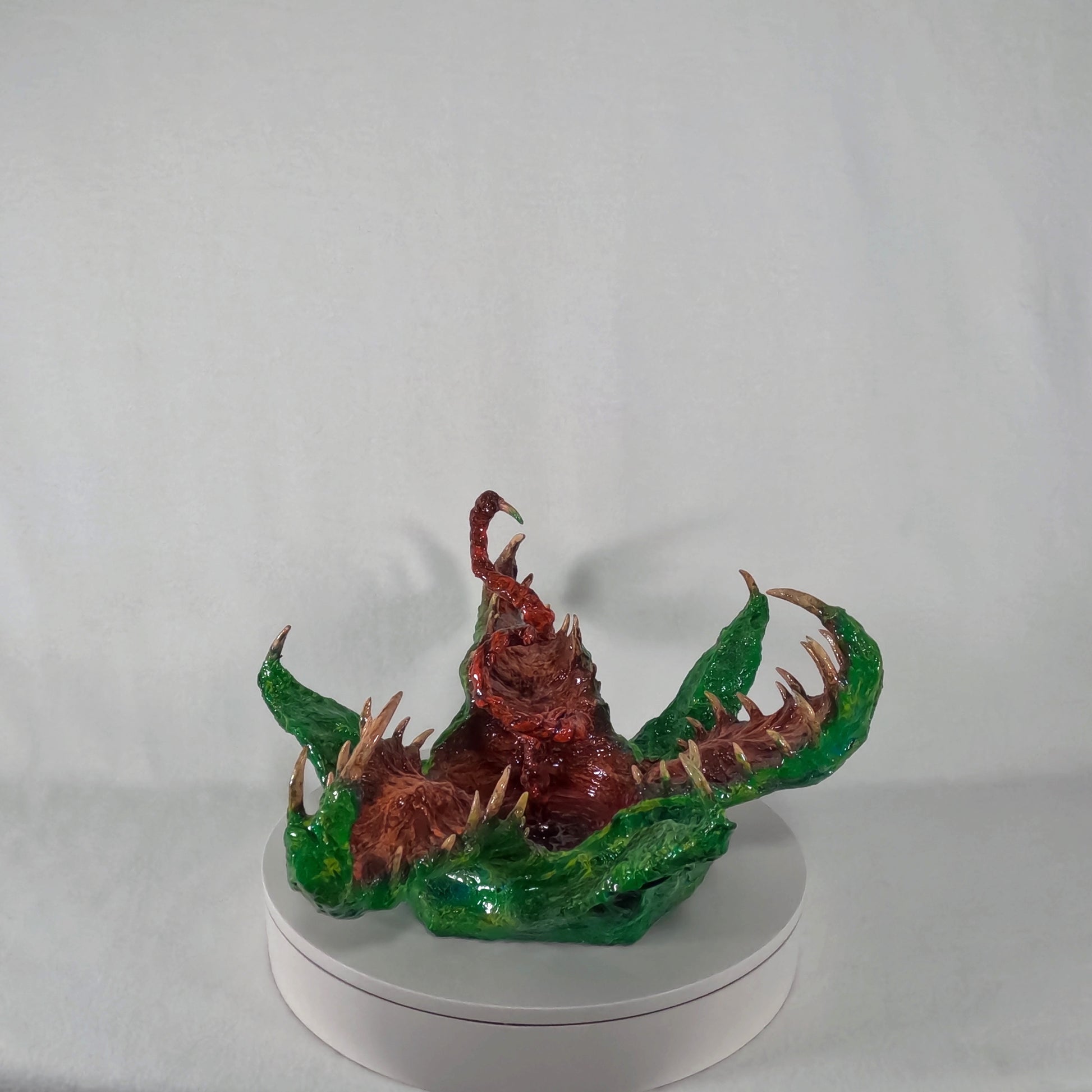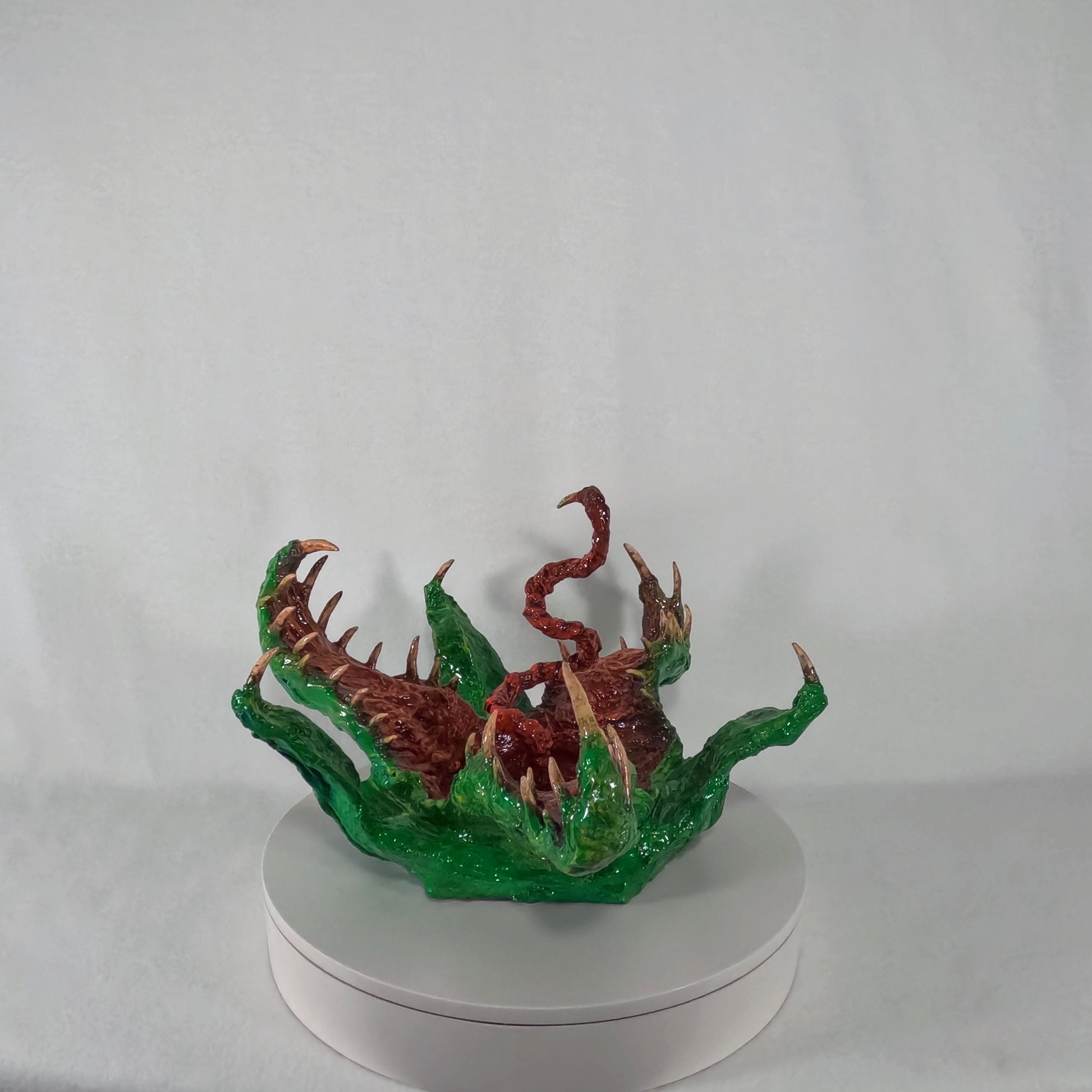 At the heart of the anomaly, they found it—a nightmarish bloom crouched low on the forest floor, its jagged, glistening leaves curled outward like the maw of some ancient beast. A thick, red tendril slithered from its core, sensing the air, twitching at their presence. "This thing isn’t just mutating the jungle," Ortega murmured, watching in horror as a nearby tree’s roots inched closer to the writhing plant, as if drawn to its influence. “It’s spreading.” Before he could react, the plant let out a faint, wet hiss, and the tendril shot forward, latching onto the tree’s bark. Within seconds, the tree blackened, its form twisting into something unnatural. Ortega and his team stepped back, realization sinking in—this was no ordinary mutation. This was an invasion,