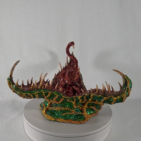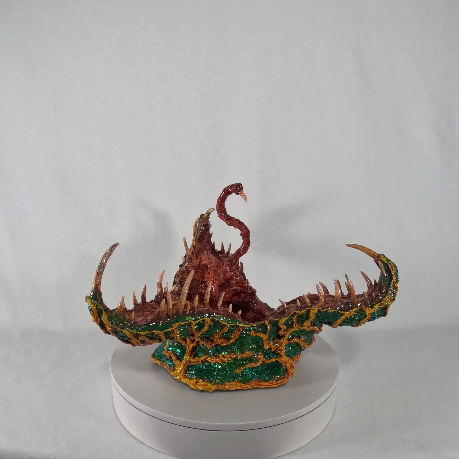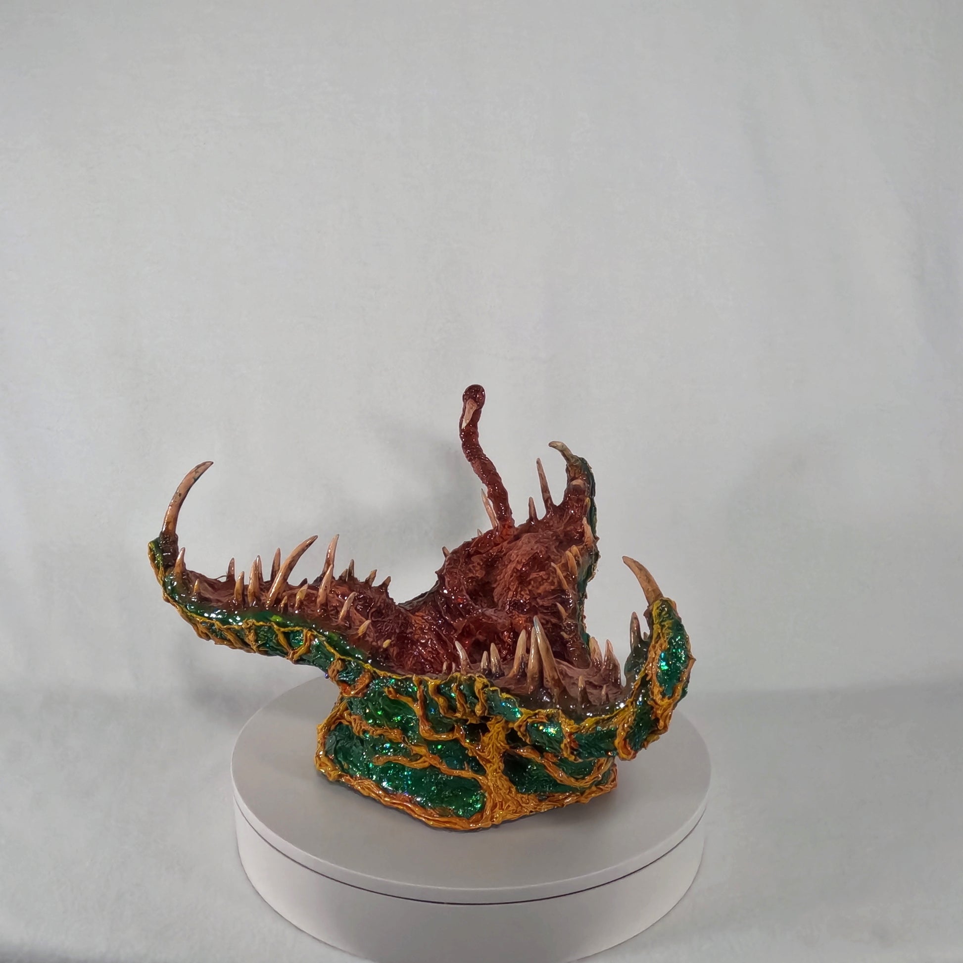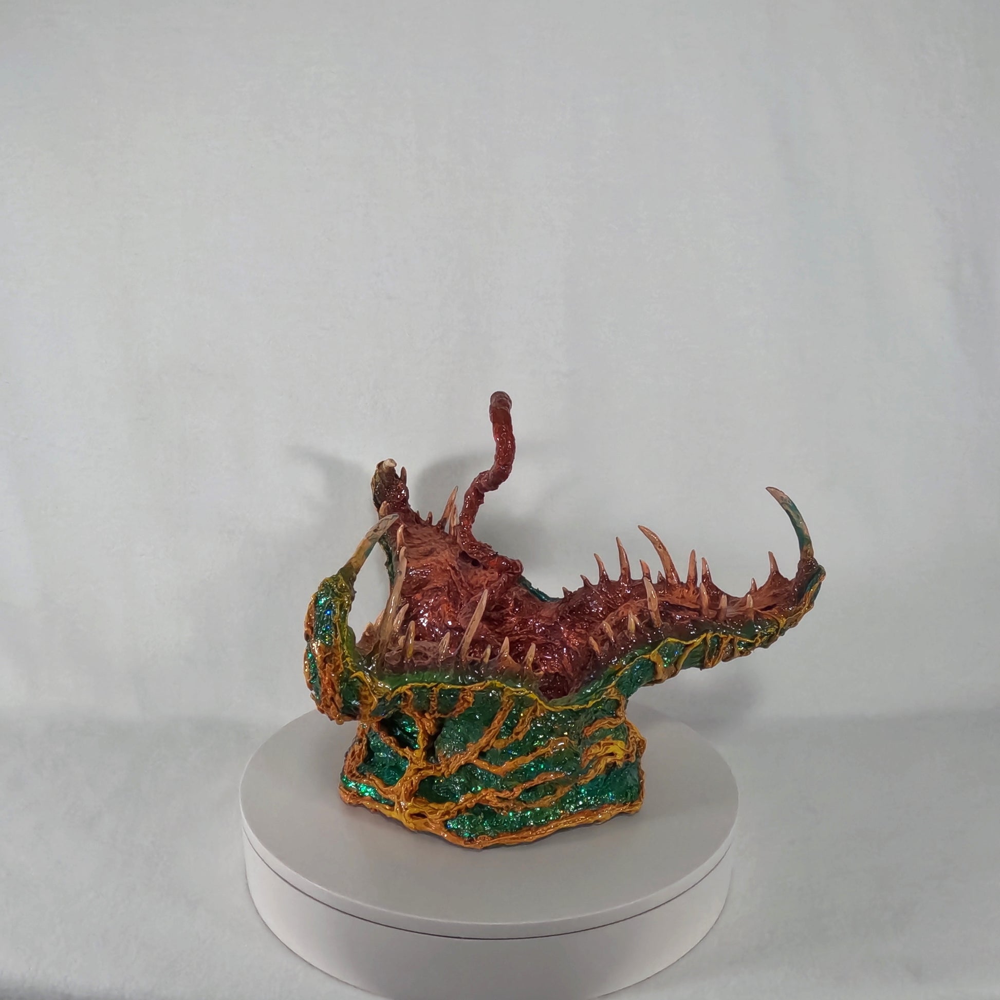 In the blistering heat of the wasteland, where the last embers of civilization had long since turned to ash, a group of survivors stumbled upon something they had never seen before. A monstrous plant, its jagged emerald flesh wrapped in golden veins, pulsed with an eerie glow. At its core, a twisted stalk coiled like a serpent, exuding a pungent, sulfurous scent. The ground beneath it shimmered with unnatural heat, as if the plant itself had carved a rift into the earth. They had seen mutation before—twisted creatures, poisoned rivers—but this thing was alive in a way that made their skin crawl.